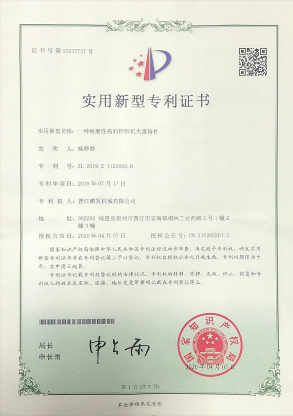 鵬發機械2020年11月通過福建省高新技術企業,2020年12月通過國家高新技術企業,且榮獲22年度科技小巨人企業,獲23年創新型中小企業等榮譽